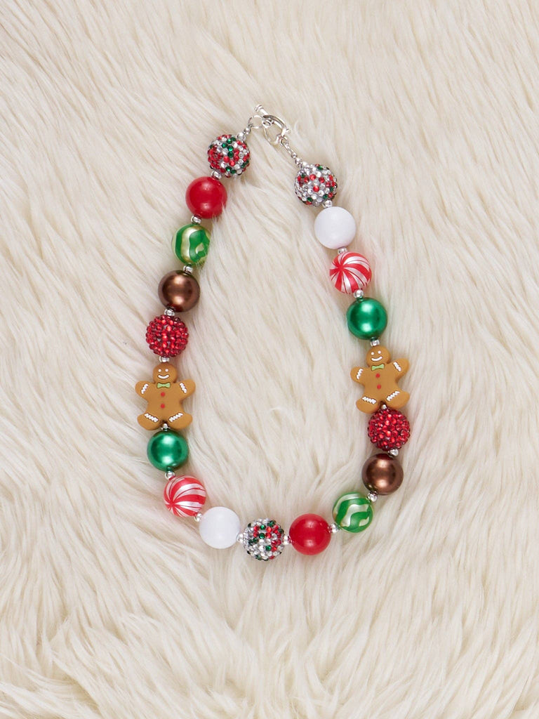 The Gingerbread Ornaments Necklace is shiny and glamorous with holiday cheer. The round beads are colorful, glittering like the ornaments on a tree. With a little gingerbread men companions, this necklace is a charming piece of jewelry for your little girl's outfits as Christmas draws near!