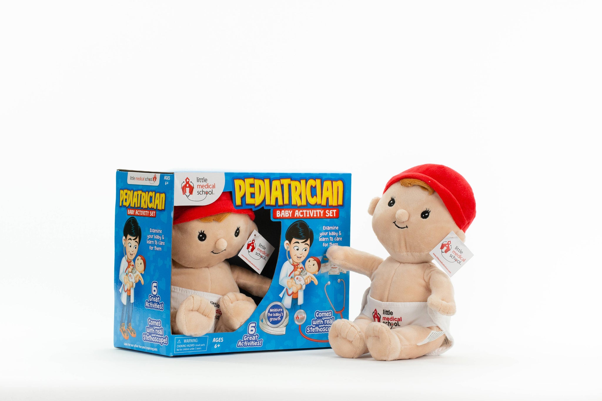Who’s ready for a check-up? Encourage your inquisitive kiddo – and inspire an interest in medical science – with the How to Be a Pediatrician Kit! Helpful healers use a real, working stethoscope and swaddle blanket to examine and care for the included plush baby doll. Guided activities – created by a doctor – include A Baby Is Born, Examine Your Baby, Change a Diaper, Make a Safe Bed, and Swaddle Your Baby. Kids follow the directions in the workbook to complete various assessments and even earn a diploma! Children can play on their own or with friends and family – role play encourages empathy, imagination, creativity, problem solving, language skills, and more.